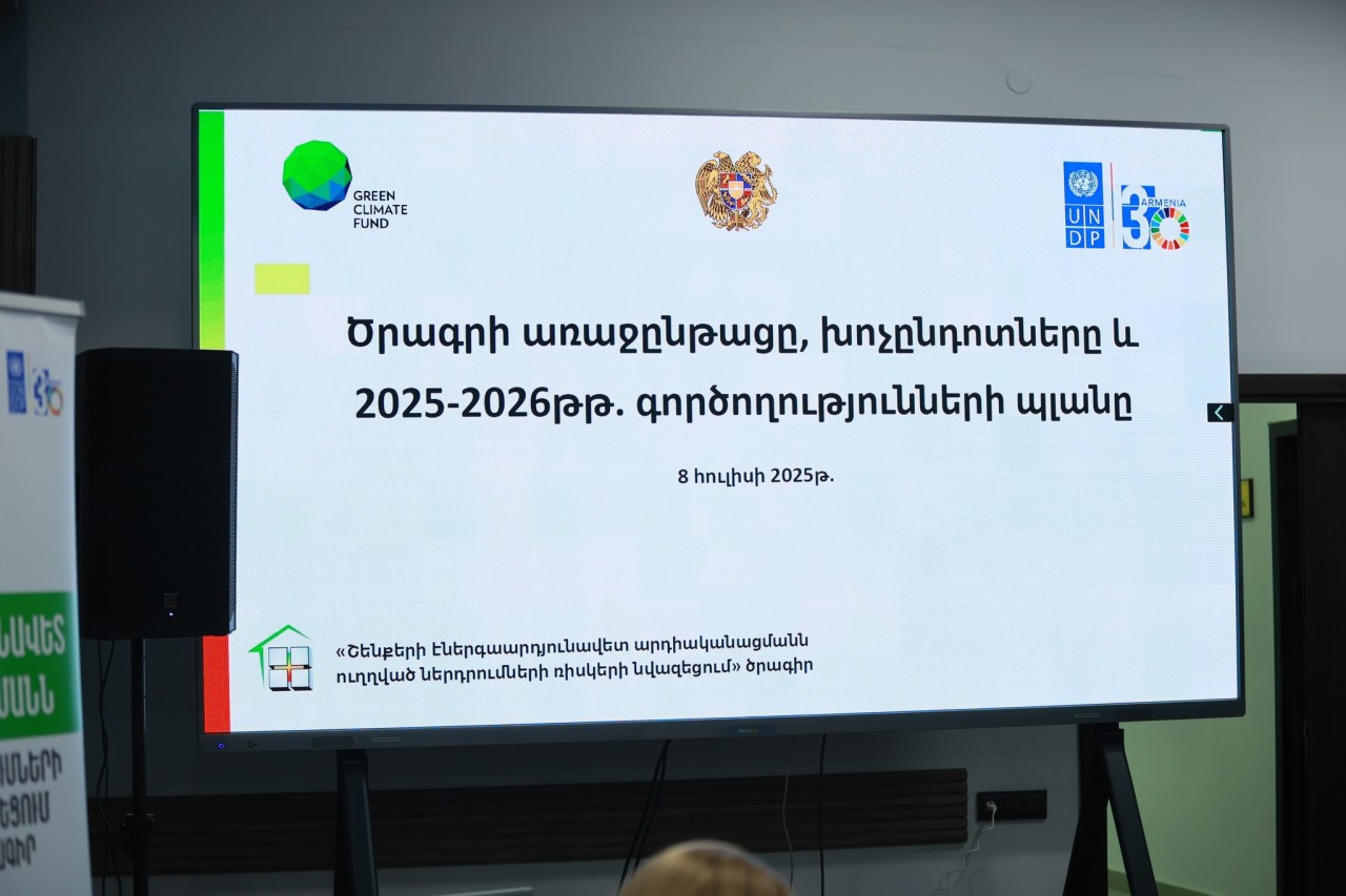 - Տեղի է ունեցել «Շենքերի էներգաարդյունավետ արդիականացմանն ուղղված ներդրումների ռիսկերի նվազեցում» ՄԱԿ-ի Զարգացման ծրագրի և Կլիմայի կանաչ հիմնադրամի (ՄԱԶԾ-ԿԿՀ) ծրագրի խորհրդի ընդլայնված նիստը